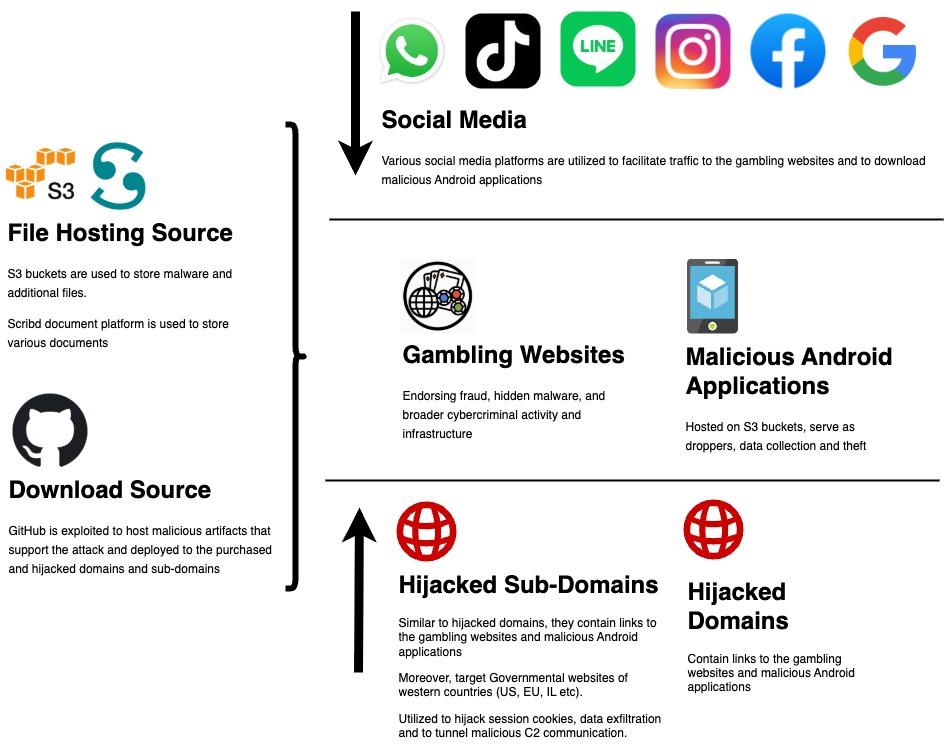 For years, different security researchers and media outlets have surfaced isolated fragments of Indonesia’s gambling cybercrime ecosystem, but no one has seen its true scale. Malanta’s research now reveals the more holistic picture: a long-running operation active since at least 2011 that aligns with the resources, persistence, and operational maturity typically associated with a state-sponsored threat actor. What began as small gambling activity has evolved into a multi-layered infrastructure spanning hundreds of thousands of gambling domains, thousands of malicious Android applications, extensive domain and subdomain hijacking, and stealth infrastructure embedded inside enterprise and government websites worldwide. Blending illegal gambling, SEO manipulation, malware distribution, and highly persistent takeover techniques, this campaign represents one of the largest and most complex Indonesian-speaking well funded, state-sponsored-level ecosystems observed to date.