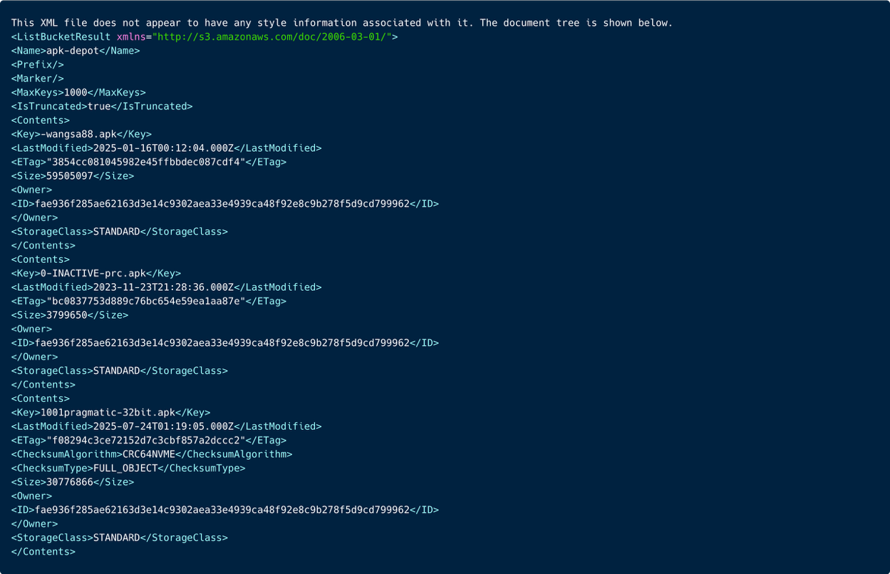 - A large-scale Android malware ecosystem hosted on AWS S3 buckets, distributing thousands of APK droppers with C2, staging, and data-theft capabilities.