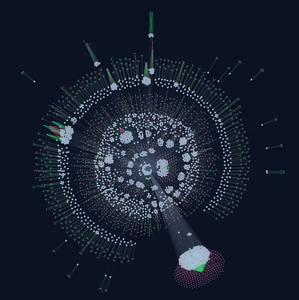 Below you can see a screenshot taken from Malanta’s platform, illustrating the APT’s infrastructure. The nodes consist of domain names, IP addresses, certificate data, and email addresses. The colored edges represent a connection between: