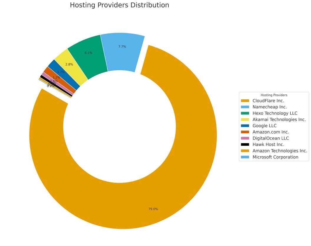 We discovered that the threat actor has hijacked at least 1,481 subdomains. Most of them were hosted on AWS, Azure, and GitHub.
