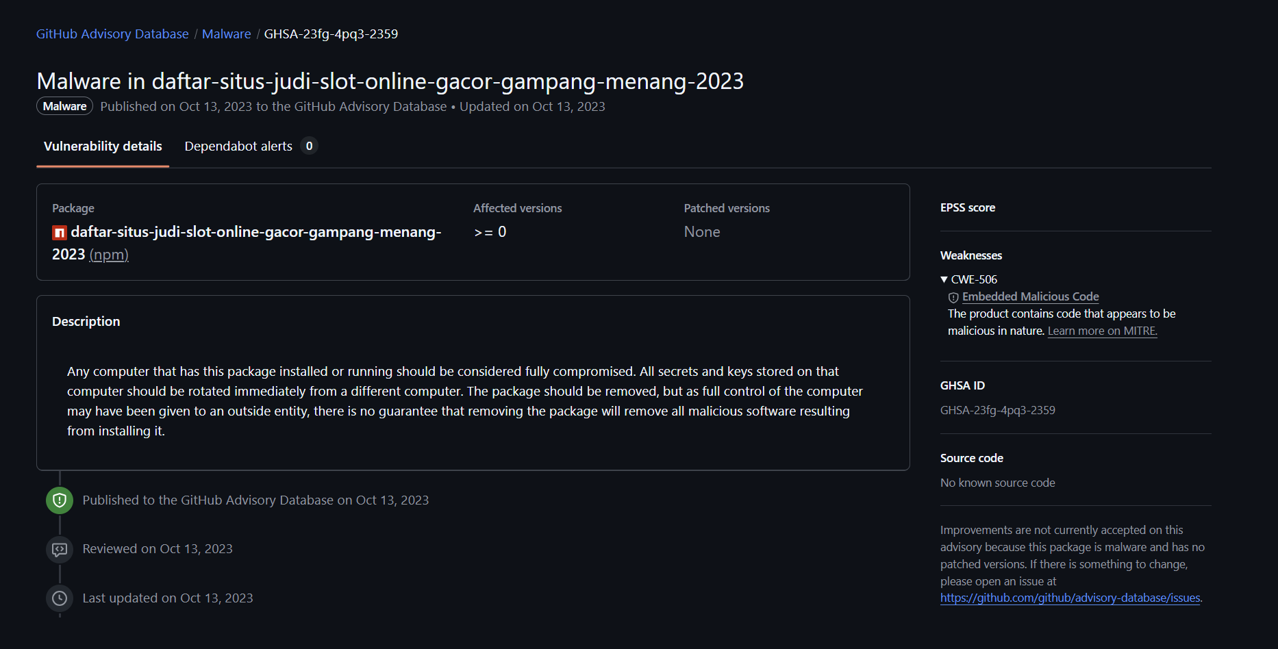 It appears that the main goal of this infrastructure is to lead users to an Indonesian-speaking gambling website. In Indonesia, all forms of gambling are illegal and pose significant cybersecurity risks, including frequent fraud, data theft, hidden malware, and links to broader criminal infrastructure.