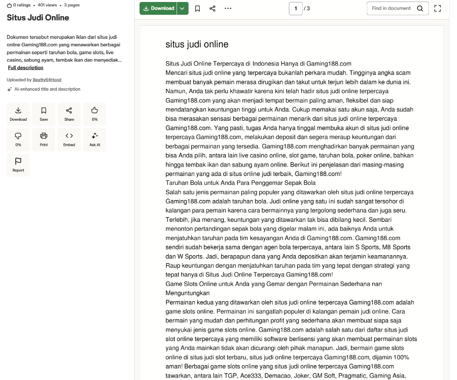 We also found a couple dozen users who shared numerous links related to the APT’s activity on the Scribd document-sharing platform, including gambling HTML templates, tutorials on how to bypass Indonesian government restrictions, and additional data related to promoting the gambling content.